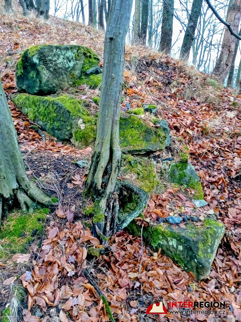 Hrad Pihel - zříceniny hradu stály údajně až do 17. století, následně došlo k jejich postupnému rozebírání na stavby v okolí (11/2022)