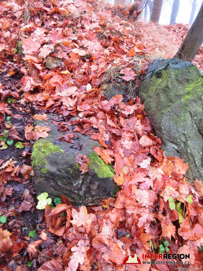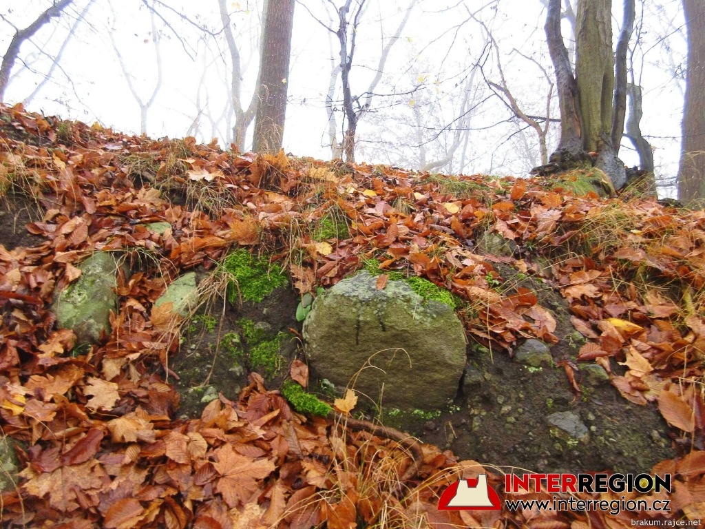 Hrad Pihel - pod listím lehce prosvítají zbytky zdiva (12/2025)